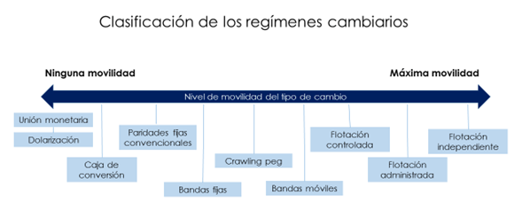 En este sentido, es importante resaltar que existen dos tipos principales de regímenes cambiarios: el tipo de cambio fijo y el tipo de cambio flexible o flotante. Si el tipo de cambio es flexible, el precio de la moneda nacional fluctúa libremente con respecto a otras monedas y es determinado de acuerdo a la interacción entre la oferta y demanda. En este escenario, el término adecuado es el de depreciación. Ahora bien, el término de devaluación se utiliza en un esquema en el cual el tipo de cambio es fijo, es decir, es establecido por las autoridades del país en un único valor. Precisamente la idea de un régimen cambiario con tipos de cambio fijo es que el precio de la moneda local no cambie. Sin embargo, en ciertas ocasiones, es necesario hacer cambios, sucediéndose así una devaluación, por lo tanto, la moneda se hace menos valiosa en comparación a otras.