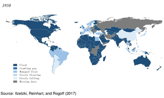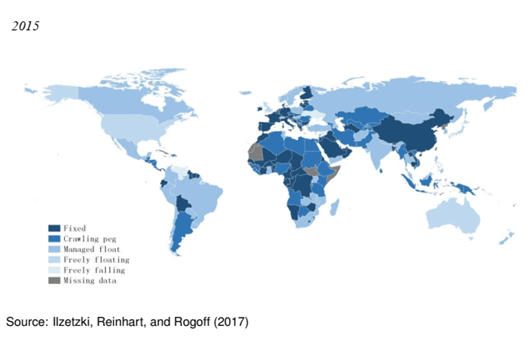 Ciertamente, al menos en el sistema actual, el régimen de tipo de cambio flexible parece ser el más popular. Los tipos de cambio de las principales divisas del mundo por ejemplo (el dólar de EE.UU., el euro y el yen japonés) fluctúan de acuerdo a las fuerzas del mercado. Muchas economías emergentes han adoptado también regímenes de flotación aunque con paridades más rígidas mediante la aplicación de bandas. Mientras que en los países en desarrollo se observa una gran variedad de regímenes, aunque los tipos de cambio fijos siguen siendo la regla, en muchos de estos países la tendencia es a adoptar regímenes más flexibles. Esto lo señalaron Ilzetzki, Reinhart y Rogoff en un trabajo de investigación del año 2017, en el que estudiaron la evolución de los tipos de cambio desde 1950 a la actualidad, pocos años después de la celebración de la reunión de Bretton Woods (1944) que creó el FMI y el Banco Mundial.