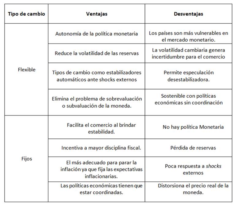 Ahora bien, la pregunta obvia es ¿cuál régimen cambiario es mejor? Ante esto lo único que podemos afirmar, desde un punto de vista meramente económico, es que en la literatura no hay ninguna demostración definitiva de que uno es mejor que otro (por ejemplo en términos de crecimiento económico, desarrollo, déficit fiscal o inflación). Lo que sí está demostrado es que, sin instituciones y compromiso monetario y fiscal, ambos terminarán irremediablemente en el fracaso. En este sentido, lo realmente importante es cómo se instrumente el tipo de cambio y el momento coyuntural en el que se aplique. Por ejemplo, un tipo de cambio fijo sin disciplina no tiene sentido, al igual que un tipo de cambio flexible en medio de una tendencia a una mayor depreciación. En realidad, ambos sistemas tienen tanto ventajas como desventajas.