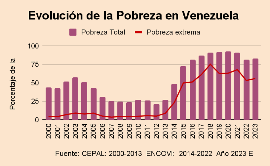 Cuando América Latina redujo la pobreza 2004-2014, Venezuela estuvo por debajo del promedio. Sin embargo, 2015 fue el punto de inflexión iniciando el ciclo de recesión económica con la mayor tasa de pobreza de la región.