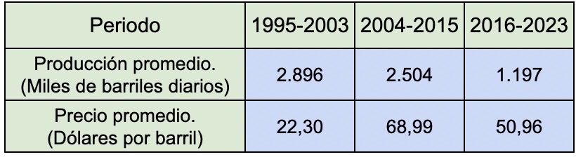 La producción petrolera dinamizó el crecimiento económico y el ingreso promedio de la población, medido en términos del PIB per cápita, indicador macroeconómico que mide el ingreso promedio de la población, calculado mediante el cociente entre el Producto Interno Bruto del país y su población del año correspondiente. Esta fue la etapa de la progresiva movilidad social hasta 2014 cuando se produjo la caída de la producción petrolera.