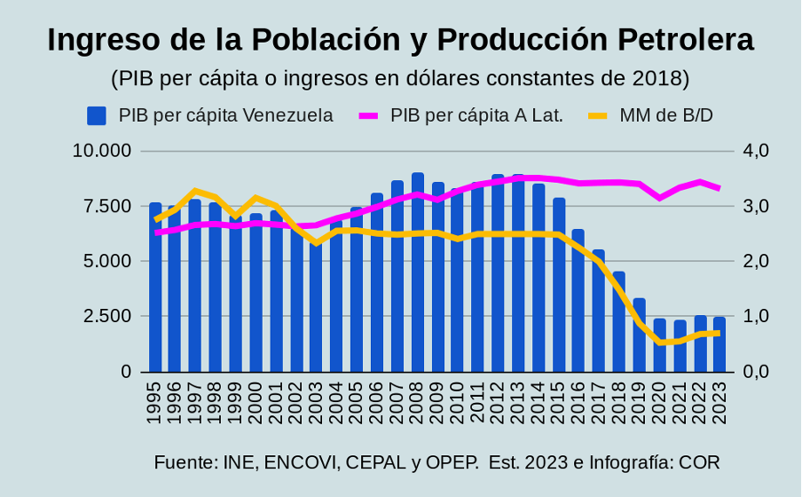 El empobrecimiento fue consecuencia de la recesión económica entre 2014-2021 y la incorporación de una alta y sostenida inflación definida como hiperinflación, que se registró en el periodo 2017-2021. Esa combinación,